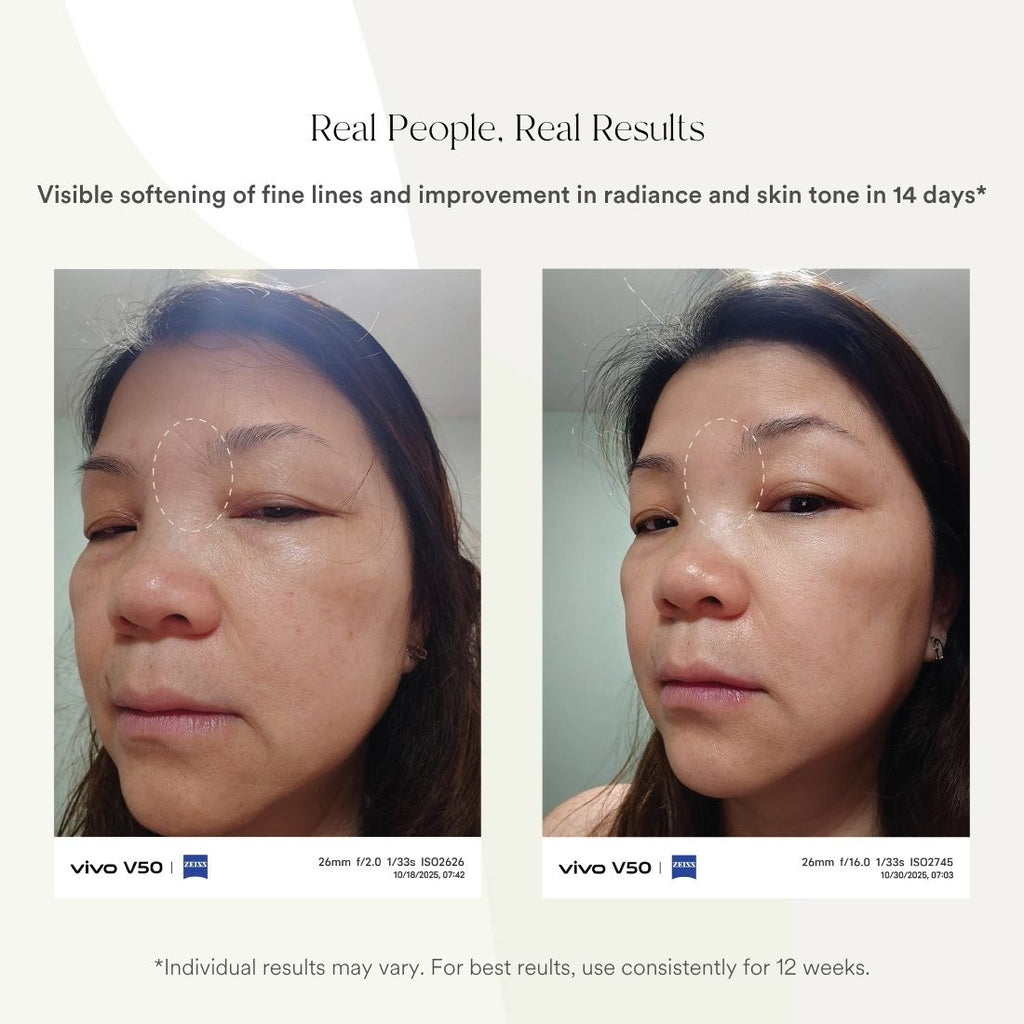 Most users notice subtle improvements in skin glow, clarity, and smoothness within 2–4 weeks. Long-term effects like even tone, resilience, and reduced inflammation develop over 8–12 weeks of consistent use.