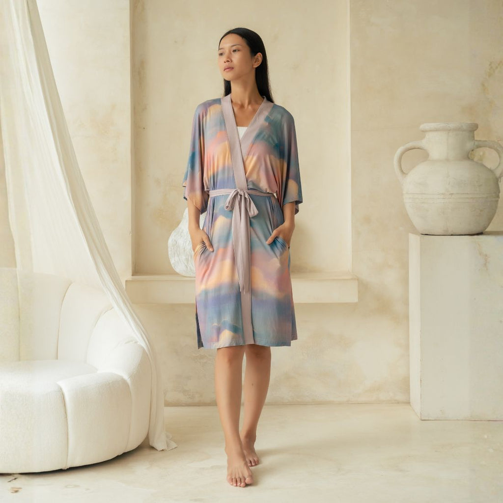 Crafted from Selenightco’s signature cooling bamboo fabric, the kimono offers a breathable, buttery-soft fit with a relaxed silhouette, side pockets, and an adjustable sash tie. Naturally thermoregulating and hypoallergenic, it feels comfortable through Singapore’s warm climate and is perfect for slow mornings and everyday lounging.