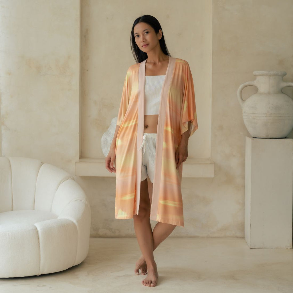 Crafted from Selenightco’s signature cooling bamboo fabric, the kimono offers a breathable, buttery-soft fit with a relaxed silhouette, side pockets, and an adjustable sash tie. Naturally thermoregulating and hypoallergenic, it feels comfortable through Singapore’s warm climate and is perfect for slow mornings and everyday lounging.